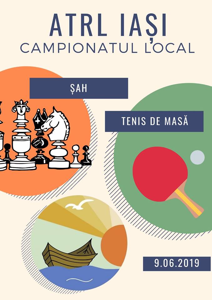 În data de 9 iunie 2019, ATRL Iași a organizat Campionatul local de șah și tenis de masă. Competiția s-a desfășurat in Club Viper, unde am avut parte de condiții bune pentru desfășurarea activității. Sperăm ca pe viitor să putem organiza acest campionat la viitorul sediul al CRL din Iași . Fiind a doua ediție , numărul participanților a crescut și acest fapt ne bucură, dar totuși sperăm ca la edițiile viitoare să avem un număr mai mare de participanți. Eu am participat la ambele sporturi , calificându-mă tot la ambele pentru următoarea etapă. Țin să-i felicit încă o dată pe toți pentru participarea la acest eveniment. Celor ce s-au calificat le urez mult succes și sper să reprezinte cât mai bine ATRL Iași la etapa regională.
