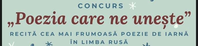 În perioada 23.12.2019 - 23.01.2020, ATRL-Rădăuți organizează concursul "Poezia care ne unește". Invităm toți tinerii cu vârsta 11 - 35 de ani, să participe la acest concurs! Candidații trebuie să înregistreze un videoclip, de aproximativ 1-3 minute, în care să se prezinte și să recite în limba rusă, versuri (dedicate iernii sau sărbătorilor de iarnă). Poate fi recitată fie o poezie în totalitate, fie un fragment din aceasta.Așteptăm videoclipurile voastre pe adresa ATRL-Rădăuți ( atrl.radauti@mail.ru ) pană la data de 12.01.2020. Videoclipurile vor fi postate pe pagina ATRL-Rădăuți, iar clasamentul câștigătorilor va fi compus astfel:- 50% votul exprimat prin intermediul rețelelor de socializare "like" și- 50% votul comisiei de 3 specialiști.Este o ocazie foarte bună pentru ca fiecare să își perfecționeze dicția, capacitatea oratorică și cunoștințele de limbă rusă.